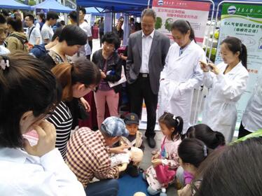 为配合本次科技周“科技强国、创新圆梦”的主题,米乐组织师生精心设计了心肺复苏、气道异物梗阻的抢救、老年慢性病的预防护理及阿尔兹海默病的护理四个科普模块。通过展板展示、发放宣传册、现场演示等向市民普及急救技能,宣传疾病护理知识。市民们纷纷踊跃学习和演练,场面十分热闹。在接下来一周的时间内,米乐将组织师生进入社区,向社区居民普及急救技能及疾病护理知识。
