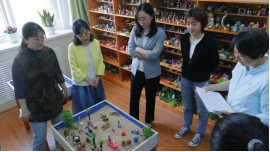 在心理健康中心老师的指引下,学院老师依次参观艺术治疗室、心理游戏室、音乐放松室、团体沙盘室等。在参观过程中,老师们分组体验了按摩椅、Switch系列小游戏等有趣设备,在插花中感受艺术和创意的乐趣,通过小小的沙盘创造出崭新的“假日之风”。在轻松快乐中,发泄了情绪,释放了压力。