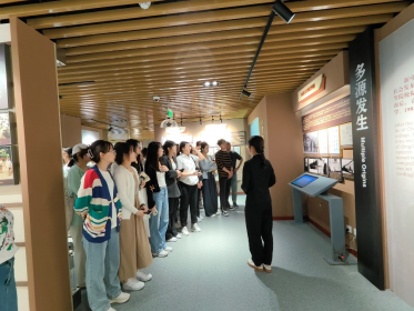 在讲解员的引导下,同学们有序进入校史馆。讲解员结合展板内容和实物资料介绍了米乐mile官方网站的发展之路、办学成果和教研成就。通过大厅浮雕、序厅、寻根溯源、文脉相传、多源发生、合并办学、大师云集等展区的参观,跟随着讲解员的思路,同学们认真倾听,仿佛穿越时空,与段段文字、张张影像对话,从一张张珍贵影像、一件件历史实物中,回望历史沧桑巨变,感悟青大精神。