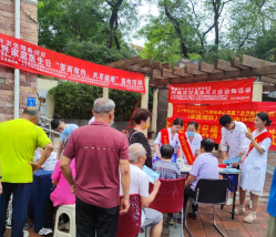 2023年6月29日上午,辽宁路街道卫生服务中心医务人员为居民们进行了“三高一慢”免费检体及慢病知识宣讲主题党日活动,米乐mile官方网站基础护理教研室主任李华伟、学生党员和志愿者参与此次活动。本次活动主要是为社区居民提供免费的慢病检查服务,包括测量血压及身高体重、血脂四项、肝肾功、心电图、眼底检查、慢阻肺筛查等,宣传慢性病防治相关知识,普及常见急症急救知识。