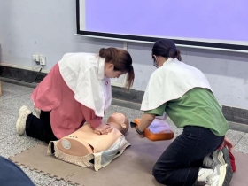 2023年6月14日,为加强安全生产应急知识的普及,提高紧急情况自救及互救能力,济南铁路车辆段青岛乘务和库检车间联合米乐mile官方网站南丁格尔志愿服务队举办了“守护生命,救在身边”安全生产月主题培训活动。培训在杭州支路青岛库检车间电教室举行,青岛及烟台地区的车间管理人员、工长等全体参加了培训,内容包括心肺复苏术、海姆立克、创伤现场急救技术等,米乐mile官方网站韩晶老师主讲,南丁格尔志愿服务队志愿者以及青大附院两位护士长在现场进行实训指导和答疑。