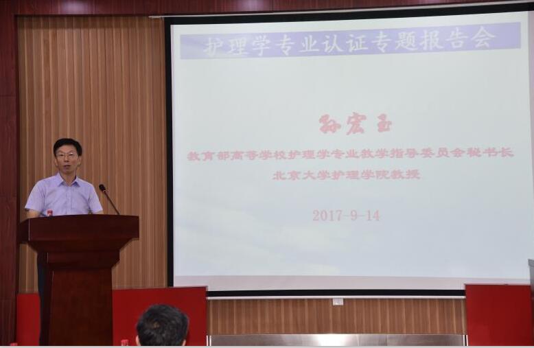 在本次报告会上,孙宏玉教授结合近年来主持全国范围内护理学专业认证工作的经验,从专业认证产生的背景、护理学专业认证标准、认证成效、认证中发现的问题、专业认证的展望等方面,详细介绍了护理学专业认证的要点及考核标准,提出以专业认证推动护理学专业的建设和改革。