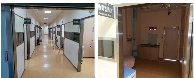在教学秘书老师的带领下,我们参观了学校的实践科技楼,图中就是根据医院的布局打造的模拟病房,学生可以在学校中模拟医院环境,并进行相关的专业技能操作。我们参观的时候,同学们正以小组的形式在分别进行实践操作。