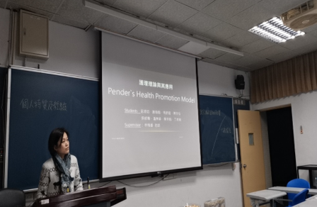 每周的课程都有着不一样的精彩和新的期待。在护理理论课上,同学们按照事先准备好的PPT进行“授课”,介绍了“Nola J. Pender”的“健康促进模型”。从理论概念出发,再到结合实际应用,深入浅出,从抽象到具体。并在介绍中插入了课堂小组比赛环节,分为几个小组,根据各组的理解,对示例中的内容进行系统的分类。为了赢得比赛,同学们都听得格外认真,最后还会有来自花莲的同学带来的特产当做活动奖品。课堂气氛可以说是认真且轻松,严肃又快乐。