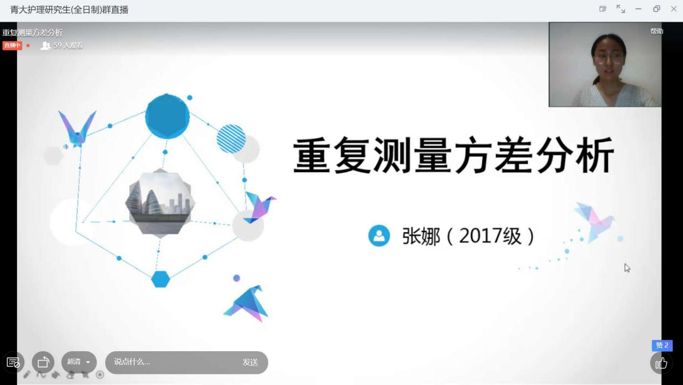 2020年7月22日晚上7点,由米乐mile官方网站举办的“重复测量方差分析”学术讲座于线上召开,部分研究生导师和全体2018级、2019级研究生参与了本次学术讲座活动。此次学术活动由米乐mile官方网站院长助理杨丽主持,由2017级研三的张娜同学担任主讲人,结合自己的课题,就重复测量方差分析进行深入讲解。