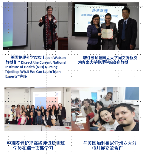 学院发挥智库作用,服务区域健康老龄化战略,参与国家卫生健康委员会、中国老年保健协会、青岛市卫生健康委员会、医保局等部门养老行业标准和护理规范的制定;与平度市民政局及青岛中康等养老示范企业签订合作协议,积极进行合作研究及人才联合培养;利用专业优势,推进科学普及,助力健康公益事业,依托青岛市社科大讲堂,开展公益讲座,本科生积极参与南丁格尔志愿服务,被青岛日报、青岛早报、青岛晚报、半岛都市报、半岛客户端、大众网等多家媒体宣传报道,形成了养老护理和志愿服务品牌特色。
