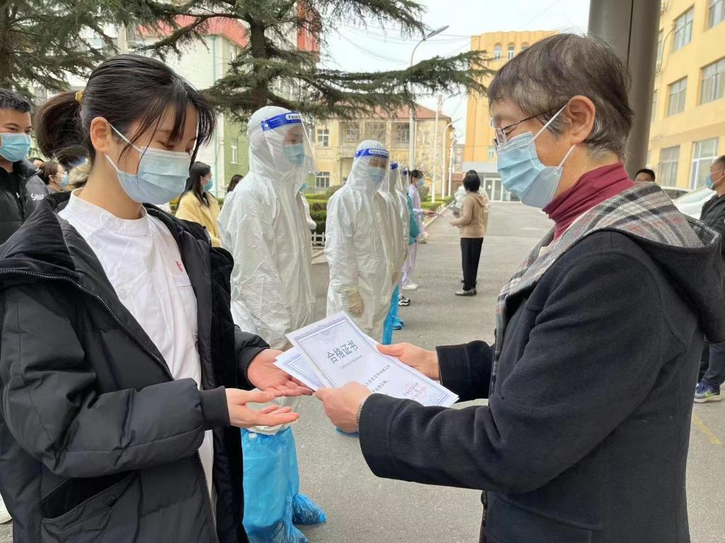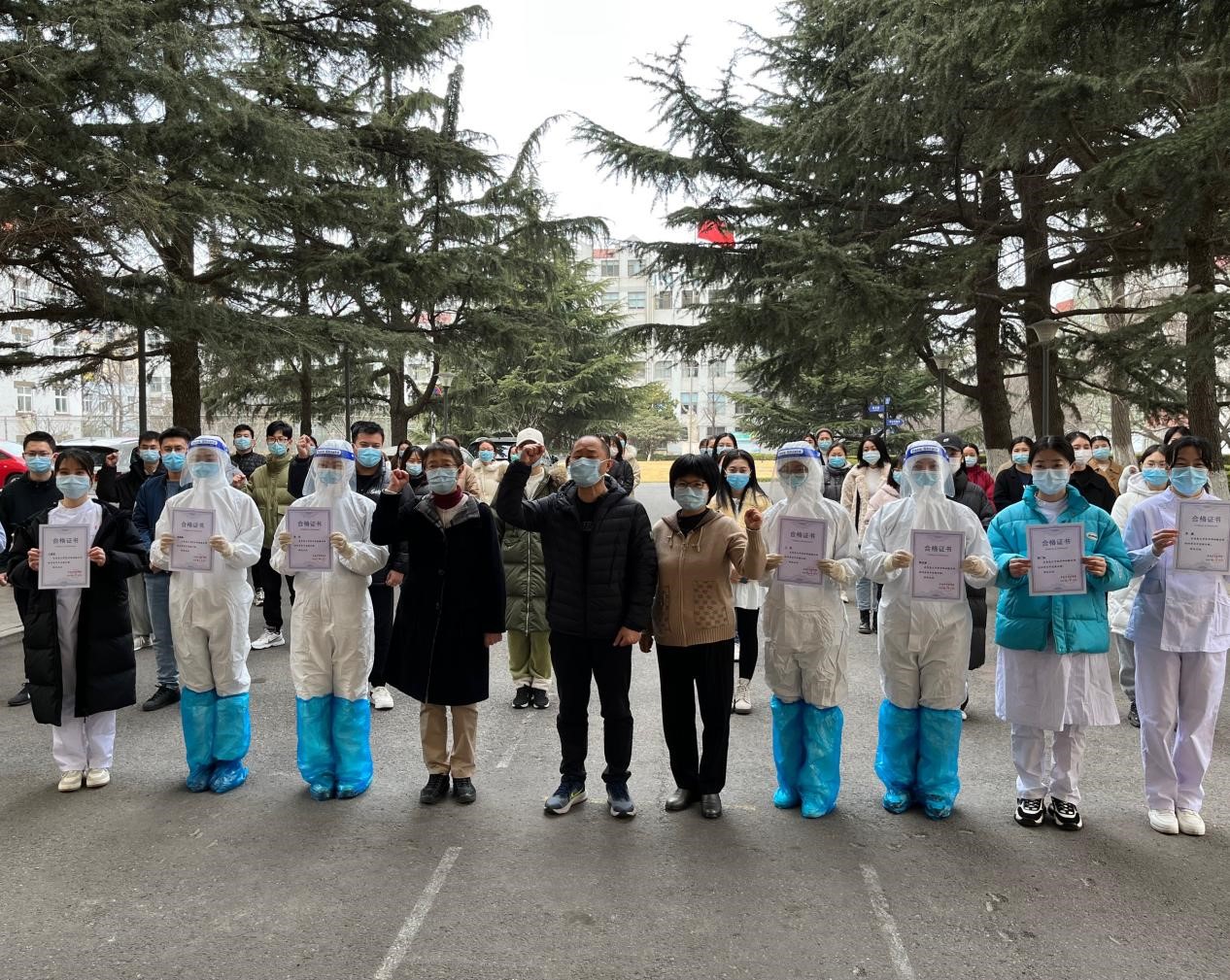 3月16日下午,学院邀请米乐mile官方网站附属医院平度院区院感科主任庞旭峰,向志愿者们介绍了采集的流程、注意事项及如何把自我防护落实到实处;3月17日,米乐mile官方网站首批核酸采集志愿者于综合楼12楼进行核酸采集实践培训与考核;3月18日下午,核酸检测培训誓师启动大会在松山校区综合楼前举行,大会由基础医学院党委副书记刘学主持,医学部党委常务副书记王有全结合当前松山校区疫情防控的形势,医学生的使命担当与青医百十年来的发展历程、深厚的文化基因和精神传承为即将踏入志愿者岗位的同学们加油打劲;米乐mile官方网站党委副书记黄美萍、口腔医学院党委副书记章敏为首批核酸采样培训考试中成绩合格的学生颁发了证书。