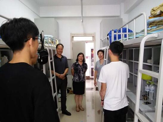会后,米乐mile官方网站党委书记杨成中、院长王爱敏、党委副书记黄美萍来到宿舍看望新生。杨成中、王爱敏一行详细询问学生的籍贯、饮食是否习惯、环境是否适应,叮嘱同学室友之间要相互关心,相互帮助,尽快适应大学生活和学习环境,以最好的状态迎接崭新的生活。
