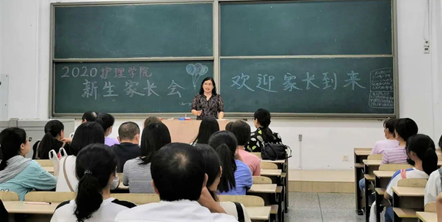 王爱敏院长首先感谢家长对学校的信任,对2020级新生表示热烈欢迎。由于疫情,今年医学相关专业的录取分数都很高,护理专业的生源质量非常好。王院长向新生家长介绍了米乐mile官方网站医学的发展史、护理专业的发展现状和前景以及学生继续深造等新生家长关心的问题。参会的领导和老师表示要全力以赴,助推学生的成人、成长、成才、成器、成功。