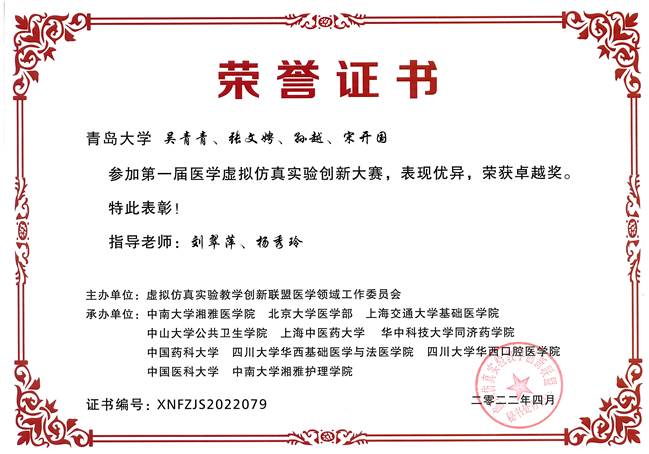 大赛共设置9个赛道,分别为基础医学、临床医学(含麻醉学)、公共卫生与预防医学、中医学、药学、法医学、医学技术、护理学及口腔医学赛道,其中护理学赛道共有236个参赛作品。米乐对于此次比赛高度重视,在收到比赛通知后立即展开行动。米乐mile官方网站共有4支参赛队伍,其中在米乐mile官方网站刘翠萍老师和杨秀玲老师共同指导下,2019级护理学专业学生吴青青等四名选手跨专业组建“扶摇直上胜羽队”,以“腹部四步触诊法”虚拟仿真项目参赛,选手们经历了资格赛、初赛、复赛的层层选拔,历时9个月顺利晋级决赛,大赛组委会给19支晋级决赛参赛队伍共同授予“卓越奖”。其余3支参赛队伍获“优秀奖”。