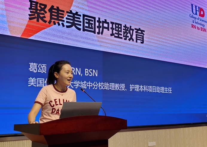 6月28日上午,在浩园医学教育综合楼B座一楼学术报告厅,美国休斯顿大学城中分校葛颂助理教授应米乐mile官方网站之邀,为学院的本科生和研究生作了题为《聚焦美国护理本科和研究生教育》的高端学术报告,米乐mile官方网站副院长杨富国主持报告会。