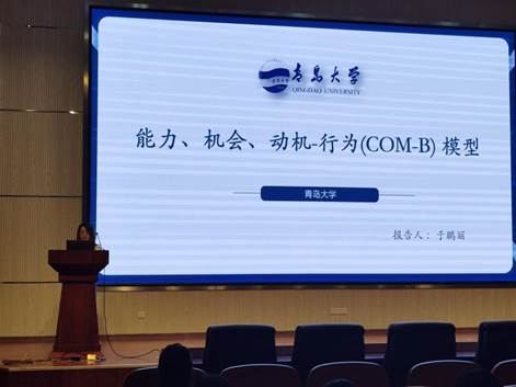 会议伊始,2019级研究生于鹏丽对COM-B模型的相关知识进行了讲解,从背景、概念、应用三方面对该模型深入解析,并结合自身的学术应用进行了举例,使同学们对该模型有了更加直观的了解,为之后在科研之路上不断进步奠定了良好的基础。