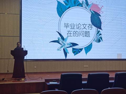 接下来,杨丽对往年毕业论文中常见的问题进行了分析,通过对实例的解读向同学们介绍了论文中的常见问题并对如何修改问题进行了讲授。