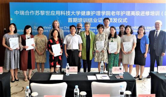 颁发仪式开始前还举行了师生见面会,米乐mile官方网站、附属医院、瑞士苏黎世应用科技大学健康学院相关领导及全体学员与会。见面会主要围绕第一期养老护理高级进修培训内容在应用过程中发挥的作用、遇到的困难,以及第二期培训的相关事宜进行了沟通交流,以进一步完善第二期的培训计划。