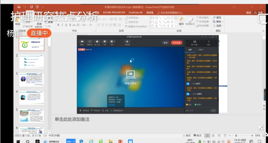 9月3日下午3点半,杨丽教授作了主题为“护理研究热点和趋势”学术报告。在报告中她首先结合此次抗击新冠疫情的实际,阐述了护理工作在健康中国战略中的作用,接着详细介绍了国内外护理管理、慢病管理与康复、重症监护病房和导管插入术等护理科研研究的热点,报告也指明了未来护理工作的发展方向,护理人员将成为卫生保健的重要力量,护士将是健康教育的主要力量,护士将成为医生和其他保健人员平等的合作者,高层次护理人才才能够适应时代的发展。最后,杨丽老师也结合自己的工作实际,向大家传授了如何快速掌握学科热点的具体方法。