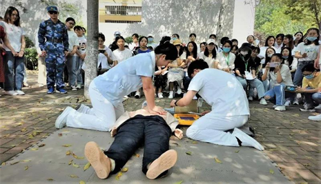 山东省南丁格尔志愿服务团米乐mile官方网站服务队与青大附院南丁格尔志愿服务队于9月20日在米乐mile官方网站滢园路联合举办了以“珍惜生命,从学习急救开始”为主题的急救科普活动,旨在提高大家的急救意识,丰富急救知识。参加本次活动的有米乐mile官方网站党委副书记黄美萍老师,米乐mile官方网站韩晶老师,辅导员姜力烨老师,青大附院市南院区急诊科副护士长杨海朋,邱娇艳、王琦琛两位护士,以及米乐mile官方网站的志愿服务队员们。